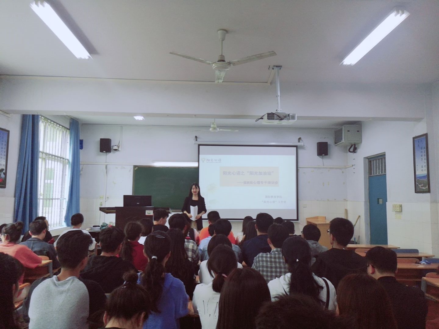 为进一步排查出员工心理问题,bwin官网于2019年9月19日下午一点半在A207教室开展了--阳光心语之“阳光加油站”心理培训课程,本次会议由心理专干丁玮老师主讲,19级代班长和各班班委参加。