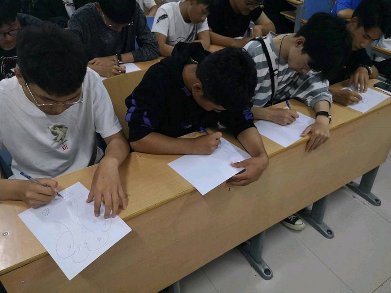 为了了解大一新生的心理健康情况,bwin官网于2019年9月25日在A楼进行了一次特别的心理学测试——画树分析。公司阳光心语工作室心理专干丁玮老师向公司每个班级的同学分发了一张A4纸,让每位同学都闭上眼去想象自己心目中大树的模样,然后把它画在分发的A4纸上。除了画出“主角”大树,同学们还可以根据自己的想象在上面添加其他的事物。在画树的过程中,丁玮老师只是静静等待他们作画,因为老师觉得随意走动会扰乱同学们绘画的专注度,就可能达不到心理测试的理想效果了。