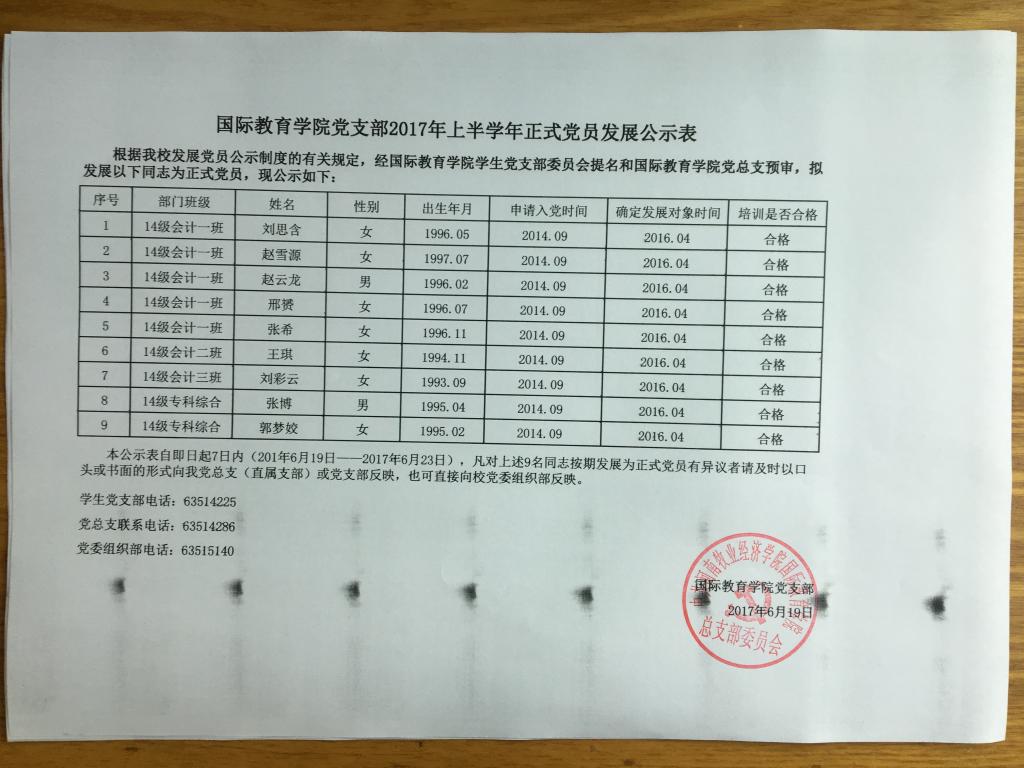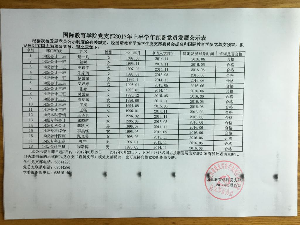bwin官网关于刘思含等9位同志转以及拟发展赵一凡等18位同志为中共预备党员的公示