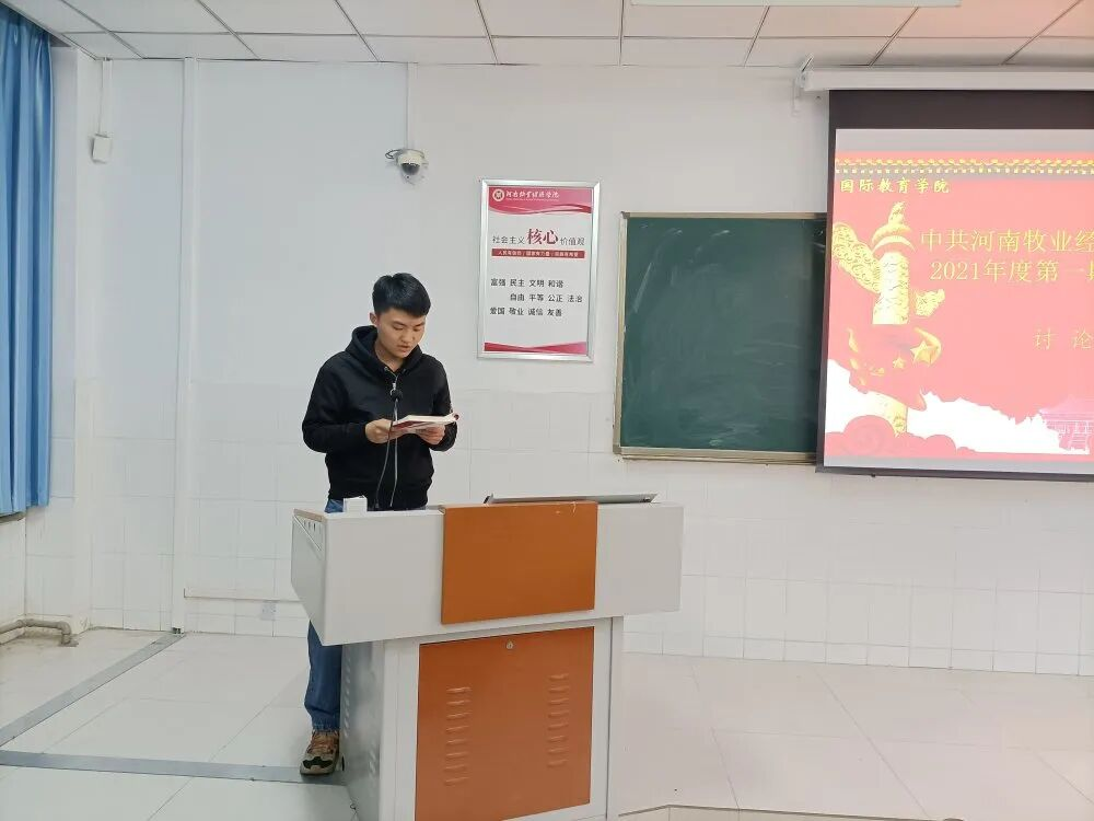 bwin官网于2021年4月12日晚在英才校区W205教室开展中共bwin必赢委员会党校2021年度第一期发展对象培训班第一讲。本次培训内容为《党员发展对象》教材,由培训班学员组长李安煜主持。
