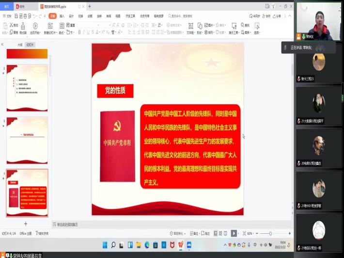 为确保在疫情防控下入党积极分子党课培训工作正常进行,提高学员们的思想素养和政治素质,激励同学们付出实际行动向党组织靠拢,3月22日晚,bwin官网通过腾讯会议平台举办线上入党积极分子培训班第一讲。本次党课学习培训活动由我公司党委书记贾江讲授,2022年第一期入党积极分子参加。