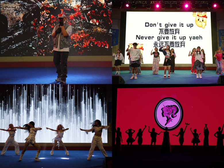 舞蹈《Fighting》活力四溢,舞者们身姿矫健,充满力量与美感的舞蹈瞬间点燃了现场的气氛。歌曲《梁山伯与茱丽叶》和《八九不离十》深情动人,歌手们动人的歌声唤起了观众们的情感共鸣,让人陶醉其中。礼仪走秀《Barbie》展示了学院员工的优雅与自信,模特们身着华丽礼服,展示着各种时尚造型,成为现场的一道亮丽风景线。说唱《黑青W》以其独特的风格和激烈的节奏,让观众们沉浸在强烈的音乐氛围中,展现了青春的激情与活力。最后二零贰乐队带来的《私奔》将现场气氛推向了高潮,乐队的激情演奏和歌手的深情演绎,让观众们沉浸在一首充满力量的摇滚音乐中,仿佛感受到了一场心灵的震撼。