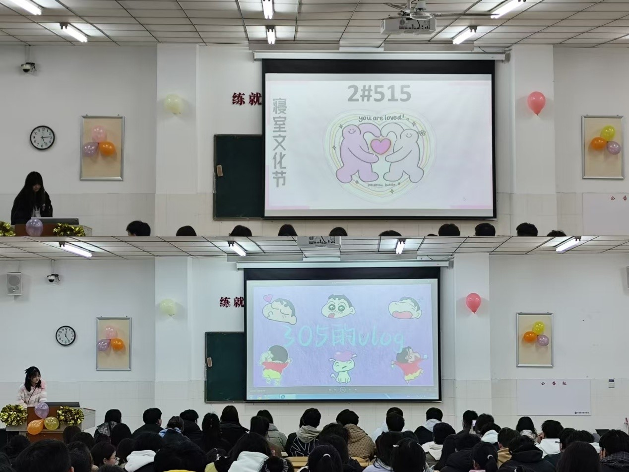 大赛分为初赛和决赛两个阶段。经过线上初赛的激烈角逐,多个宿舍脱颖而出。在进入线下决赛现场,各宿舍代表满怀激情地展示着各自宿舍的文化和创意。他们通过PPT讲解、展示vlog等形式,向现场人员详细介绍了寝室的成员、卫生、文化特色以及宿舍未来愿景等。这些作品不仅展现了同学们的创造力,生动地讲好了“家”的故事,也向全场人员展示了健康、活泼、文明、向上的宿舍育人环境。