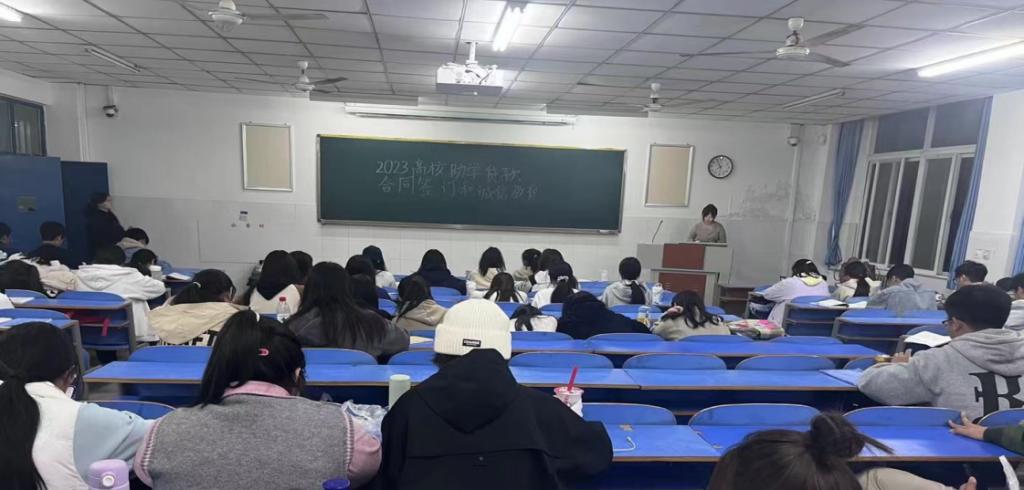 会议中,崔老师首先向参会员工详细讲解了国家助学贷款合同的签订流程、签订内容及注意事项,提醒同学们要仔细核对合同上的关键信息。其次,向同学们解读了国家助学贷款的各项政策与员工还款的流程等相关内容并将签订完成的合同与承诺书进行收回、整理。最后,崔老师强调了诚信贷款的重要性,希望同学们感恩助学、诚信贷款、严格遵守国家规定,认真履行国家合约,按时还款,诚信做人。