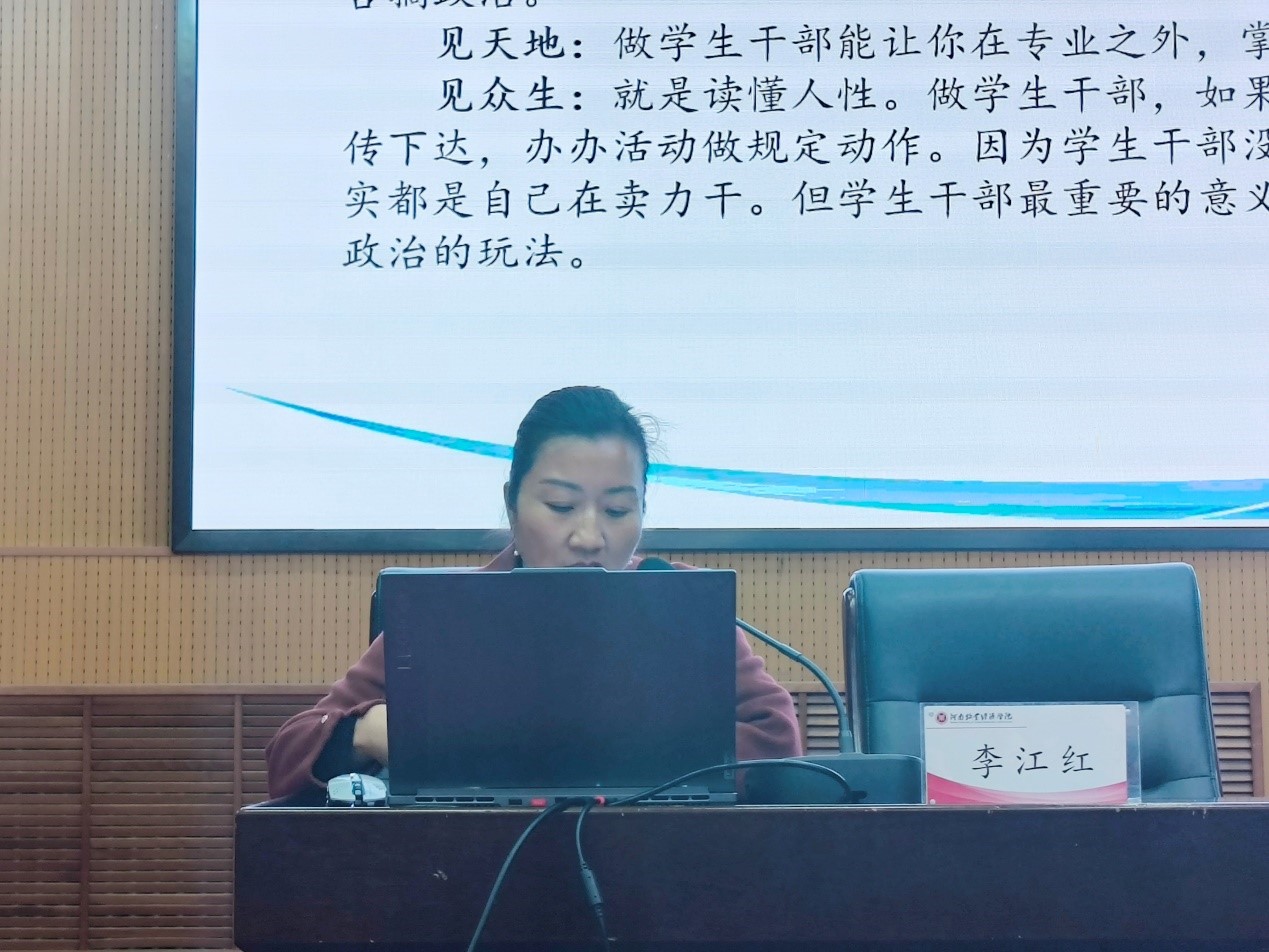 李书记首先从作为员工干部,你的老员工活要怎么过这一问题引入主题,随后从员工干部的定义,员工干部的素养,员工干部的学习与职业发展三方面开讲,对员工干部的风貌展现和发展规划提出了要求,作为员工干部应该找准定位,拓宽思维,要平衡好工作与学习之间的关系,切实完善自身知识结构,努力提高自身的语言表达、沟通社交、组织领导等全方面能力,提高自身综合素质。在锻炼自我综合能力的同时,发挥模范带头作用,积极的为促进公司创新发展贡献一份力量,体现公司员工干部队伍砥砺求实的风采。她希望大家低头有坚定的脚步,抬头有清晰的远方,发挥个体能力和集体合力,在实现个人成才的同时,服务学院发展。