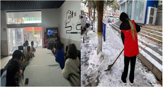 在寒假期间王非凡同学来到居民委员会中,进行了为期二十天的志愿服务。在居委会期间主要开展了辅助整理档案材料,慰问孤寡老人、劝阻居民燃放烟花爆竹,参与宣传工作,拍摄活动照片,扫雪除冰等服务。