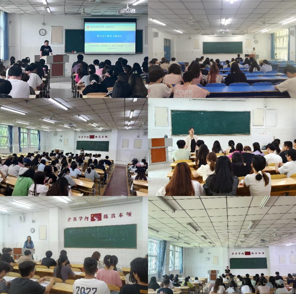 班会上,各班级辅导员对假期前后主要工作进行了安排部署,教育引导全体同学要收心归位,将主要精力放在期末考试复习上,要正确认识期末考试的重要性,自觉遵守考试纪律,坚决杜绝各种考试舞弊行为,以良好的精神状态交出一份让自己满意的考试答卷。随后,各位辅导员老师通过讲政策、举案例的方式围绕交通安全、食品安全、财产安全、网络安全、防火防电等方面对同学们进行了安全常识教育,提醒同学们一定要重视安全问题,增强安全意识,从思想上行动上理解、支持学校关于加强安全管理工作的举措,从自身做起、从身边做起,及时排查、杜绝安全隐患,积极营造安全氛围,筑牢安全防线,创造优质育人环境。