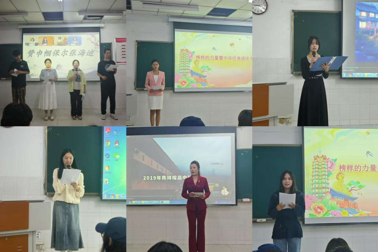 为热烈庆祝中华人民共和国成立75周年,深入学习贯彻落实党的二十届三中全会精神,持续推进中国特色社会主义思想教育主题走深走实,进一步激励青年学习先进、争当先进,为祖国发展事业贡献青春力量。10月15日晚,bwin官网团学会纪检部和组织部在W203教室举行“榜样的力量暨中华经典诵读大会”诵读比赛。