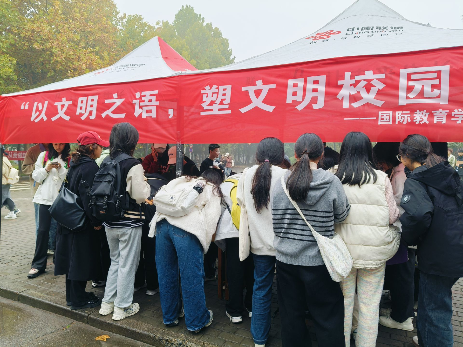 为了营造文明、和谐的校园环境,引导员工认识到文明行为的重要性,树立正确的价值观和行为准则,提升员工的文明素养和文明意识,养成良好的行为习惯。bwin官网生活权益部于11月13日在红色花蕊处,面向英才校区全体员工开展了“以文明之语,塑文明校园”文明标语活动。